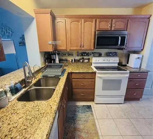 Welcome to coastal living at its best! This beautifully furnished, move-in-ready condo or Turnkey Short Term Rental offers a spacious, fully equipped kitchen with maple cabinets, quartz countertops, and all necessary cooking and dining essentials, plus a breakfast nook and three pantries. The two-bedroom layout includes: • Master Bedroom: King-size bed, dresser with full mirror, coastal-themed lamps, walk-in closet, private vanity, and en-suite bathroom with pocket door access. • Guest Bedroom: Two twin beds, dresser, TV, coastal lamp, and a full-size bathroom nearby. Pinebrook community amenities include a public golf course, private heated pool, BBQ area, and covered garage parking. A larger pool with a hot tub is available near the Community Club House, which features a full kitchen, gym, library, and entertainment areas. Conveniently located 11 miles from Sarasota/Bradenton Airport (23 minutes) and 42 miles from Tampa Airport (46 minutes), this condo is close to shopping, dining, and entertainment!